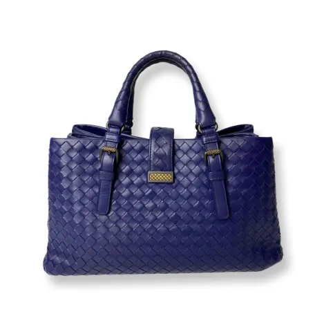 Preowned Botega Venetta Roma SmallBlue Indigo Intreciatto GHW Year 2016Comes With :DustbagMirrorStrap