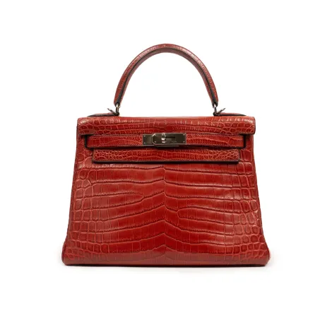 Preowned Kelly Retourne 28 cm Rouge H Niloticus Matte Crocodile