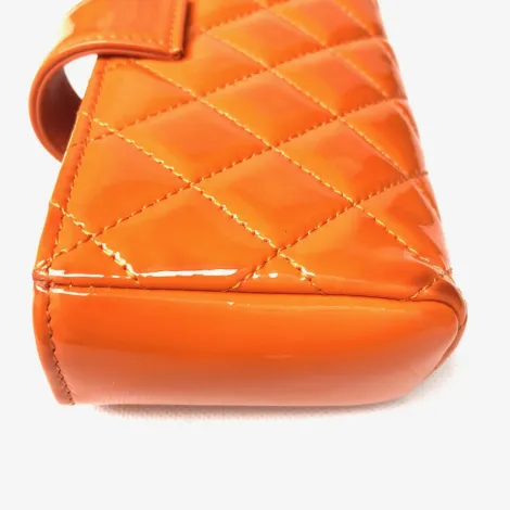 Chanel Phone Holder in Quilted Orange Patent leather serial number 19