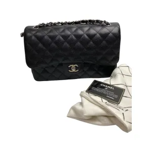 Preowned Chanel Jumbo Double Flap Black Caviar SHWSerie 14xxxSize : 30 cmComes with :DustbagCard and Holo